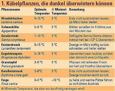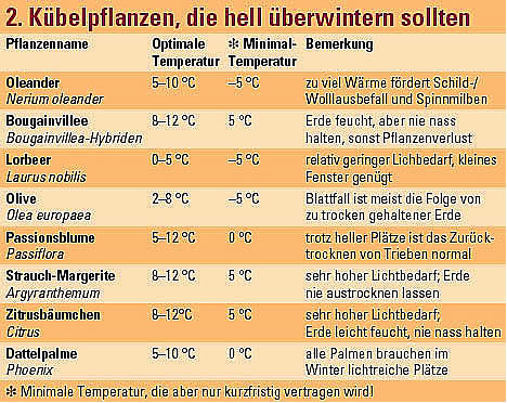 (Bougainvillea). Für diese Kübelpflanzen gilt im Überwinterungsquartier