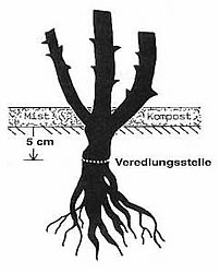 ca 5 cm in den Boden kommt. Rosenwurzel dürfen nicht umgebogen werden. Erde