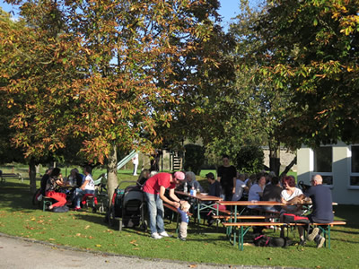 Wenige Gäste wollten bei dem tollen Wetter in unserem Vereinsheim sitzen. Die Bierbänke haben