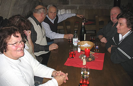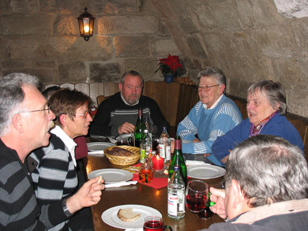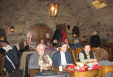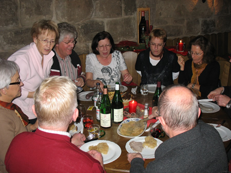 Der Bus war voll besetzt, als wir uns am 5 Dezember 2008, mit kleiner Verspätung Richtung Meimsheim aufmachten. In der dortigen Besenwirtschaft Weingut Kern-Schaufler wurden wir mit Sauerkraut, Fleisch, Leber- und Griebenwürstchen bewirtet. Dazu gab es Weine aus eigenem Anbau. Der schöne rustikaler Gewölbekeller mit Kamin, sorgt für Gemütlichkeit und gute Atmosphäre. Essen und Trinken wurde allgemein gelobt und die Stimmung unter den Gartenfreunden war sehr gut. Gegen 22 Uhr holte uns der Fahrer mit dem Bus wieder ab, und wir kamen wohlbehalten in Freiberg an. Diese Feier war ein Dankeschön der Vorstandschaft an die Vereinsmitglieder für ihre erfolgreiche Mitarbeit beim Frühlings- und Bürgerfest, sowie an weiteren Vereinsaktivitäten. Auch im nächsten Jahr werden wieder fleißige Helfer gebraucht, für die dann Ende des kommenden Jahres wieder eine Helferfeier stattfindet.