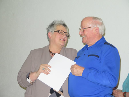 auf das Jahr 2016 folgte. Das Frühlingsfest ist wie immer der erste große Höhepunkt. Wir konnten uns wieder über viele Besucher freuen. Bei einer Lehrfahrt in die Pfalz lernten die Teilnehmer einen schönen Teil unserer Heimat kennen und ein Stück Geschichte dazu. Am Tag der offenen Tür des Landesverbandes nahm das Ehepaar Hettich teil und fand es sehr interessant und informativ was dort in Vorträgen und Informationen über die Arbeit des LV dargebracht wurde. Im September wurde ein "Frauenkaffeeklatschnachmittag" organisiert. Er war eigentlich gedacht zum Kennenlernen der älteren und jüngeren Mitglieder, dass man sich ein bisschen näherkommt. Zum Glück saßen die Organisatoren nicht allein da und es gab Auftrieb das zu wiederholen. Das Herbstfest war auch wieder ein toller Erfolg. Das konnte an den zahlreichen Gästen, den fast leeren Töpfen, Schüsseln und Kuchentellern zu sehen sein. Nach einigen Jahren Ruhe fand wieder einmal ein Seniorennachmittag statt und wir waren über die große Resonanz erfreut. Es wurde ein sehr gemütlicher Nachmittag mit netten Gesprächen und die meisten gingen mit einem Lächeln nach Hause. Für die fleißigen Helfer und Helferinnen fand eine Helferfeier satt. Das soll ein kleines Dankeschön sein. Ohne den Einsatz der freiwilligen Helfer wäre das alles nicht möglich. Zum Schluss ihrer Ausführungen bedankte sich unsere Vorsitzende bei ihrem Vorstand, den Ausschussmitgliedern und besonders auch bei den Obleuten für die gute Zusammenarbeit, das Engagement und die Einsatzbereitschaft, es ist nicht selbstverständlich, kostet Freizeit und wird wenig bzw. gar nicht honoriert. Im Anschluss an den Rechenschaftsbericht erfolgte der Kassenbericht. Der Haushaltplan für das Jahr 2016 war gut aufgestellt und es konnte mit einem kleinen Plus abgeschlossen werden. Die Revisoren konnten dem Kassierer wieder eine sehr gute Arbeit bescheinigen und keinen Fehler bei der Kassenprüfung feststellen. Der Verein steht auf guten finanziellen Füßen, was auch nicht selbstverständlich ist. Der neue Haushaltplan für das Jahr 2017 sieht größere Ausgaben vor, da einige Renovierungsarbeiten am Vereinsheim, der Ersatz der gestohlenen Regenrinnen und dem Dach anstehen. Er wurde beschlossen. Herr Zimmer von der Stadt Freiberg dankte in einer kurzen Ansprache dem Verein für seine Arbeit und dem Einsatz. Im Anschluß hielt Herr Gensicke vom LV einen Vortrag über Ungeziefer, Pilze und andere ungebeten Sachen die den Boden, die Pflanzen, Bäume und Sträucher befallen können und wie man diese bekämpfen kann. Fragen wurden gleich fachmännisch beantwortet. Zum Schluß wurden die Jubilare geehrt: 25 Jahre Mitgliedschaft: Paul Geiger, Marcus Gohlke, Manfred Weiher, Heinz Reichert 40 Jahre Mitgliedschaft: Johann Kitzberger, Horst Hegele, Doris Becker, Martin Willy, Rintsje Bakker, Herbert Geisbauer 50 Jahre Mitgliedschaft: Johann Rieschl, Rolf Lauritz, Heinz Hermann, Georg Schump, Gunter Kögler Sie erhielten ein kleines Präsent und eine Urkunde und natürlich eine großes Dankeschön und großen Applaus der Anwesenden. Gisela Reinelt ![]() Bericht - Siglinde Scheuer ![]() Rathaus - Herr Zimmer ![]() Kassenbericht - Werner Schmitt