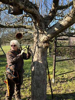 eingefunden. Wir haben uns über die Resonanz sehr gefreut. Frau Ziegler, die 1. Vorsitzende des Obst- und Gartenvereins Asperg, hat in ihren Ausführungen erklärt, was man beim Verschneiden von den Sträuchern und Bäumen so alles falsch, aber natürlich lieber richtigmachen kann. Sie verfügt über ein sehr großes Fachwissen und hat auf jede Frage auch eine Antwort. Nach ungefähr zwei Stunden waren dann die meisten bei den Minusgraden durchgefroren. Da kam der Glühwein und die Schmalzbrote gerade richtig. Das Resümee aller Teilnehmer: Es war wieder sehr interessant, Wissen wurde aufgefrischt bzw. ist neu dazugekommen. Gisela Reinelt